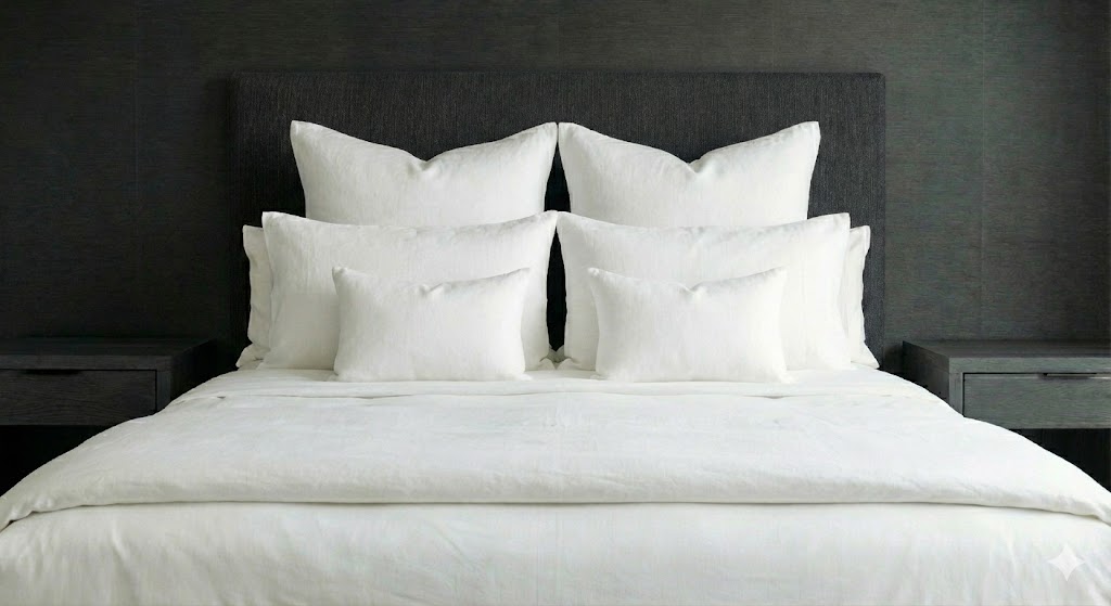Ein Refugium für die Sinne: Dunkle Eleganz trifft auf moderne Kunst. Das großzügige Bett mit markanter Linienführung lädt zum Träumen ein, während das goldene Lippenmotiv über dem Kopfteil sinnliche Akzente setzt. Die klaren Formen des Interieurs verschmelzen mit subtiler Beleuchtung zu einer Atmosphäre, die sowohl Ruhe als auch Spannung verspricht. Im Bad: Schieferfarbene Wände, goldene Armaturen und ein großzügiger Regenduschbereich verwandeln jeden Moment in einen luxuriösen Wellness-Moment. Zimmer 1 ist geschaffen für Gäste, die Extravaganz schätzen und sich gerne in einem Ambiente bewegen, das geheimnisvoll und zugleich wohltuend reduziert wirkt.