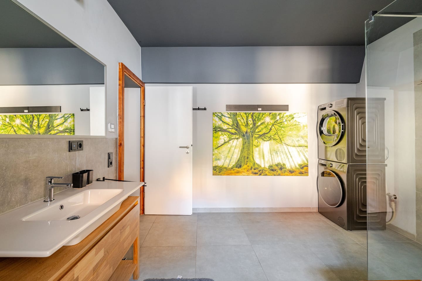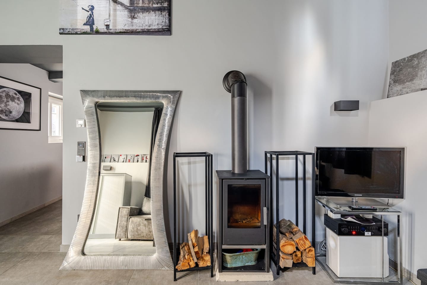 Das NOXi 24/7 Guesthouse verbindet modernes Design mit wohnlicher Eleganz auf großzügigen 90 m². Lichtdurchflutete Räume, klare Linien und stilvolle Details schaffen eine Atmosphäre zum Wohlfühlen. Im Wohnzimmer lädt ein Kamin zu entspannten Abenden ein, während das offene Loft-Schlafzimmer mit King-Size-Bett luxuriösen Schlafkomfort bietet. Die voll ausgestattete Küche mit Barbereich und Weinauswahl macht Genussmomente perfekt. Das Bad beeindruckt mit einer großzügigen Walk-in Dusche, edlen Fliesen und klarer Ästhetik. Dank Self-Check-in genießen Gäste maximale Flexibilität und Privatsphäre. Ein Ort für alle, die stilvolles Wohnen, Komfort und Freiheit miteinander verbinden möchten.